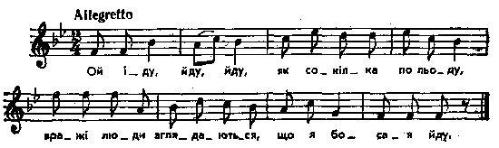 Ой іду, йду, йду, як сокілка по льоду, вражі люди зглядаються, що я босая йду... Примітки Джерело : Леся Українка. Зібрання творів у 12 тт. – К. : Наукова думка, 1977 р., т. 9, с. 138. Вперше опубліковано : Народні мелодії. З голосу Лесі Українки. Записав і упорядкував Климент Квітка. – К. : 1918 р., ч. 2, с. 202. Фольклорні записи Перший | Попередній | Перелік | Наступний | Останній |